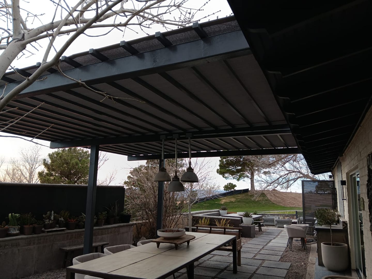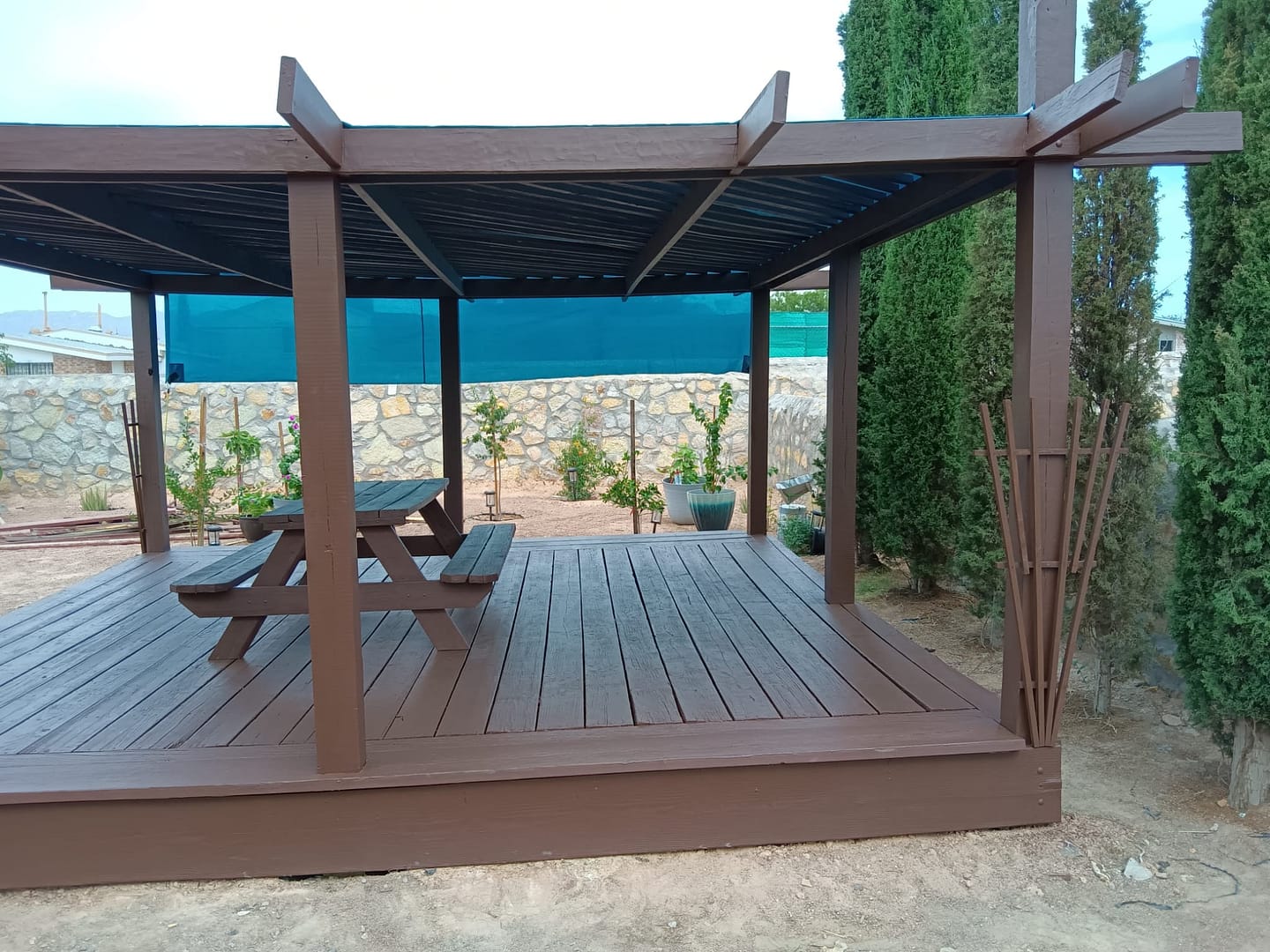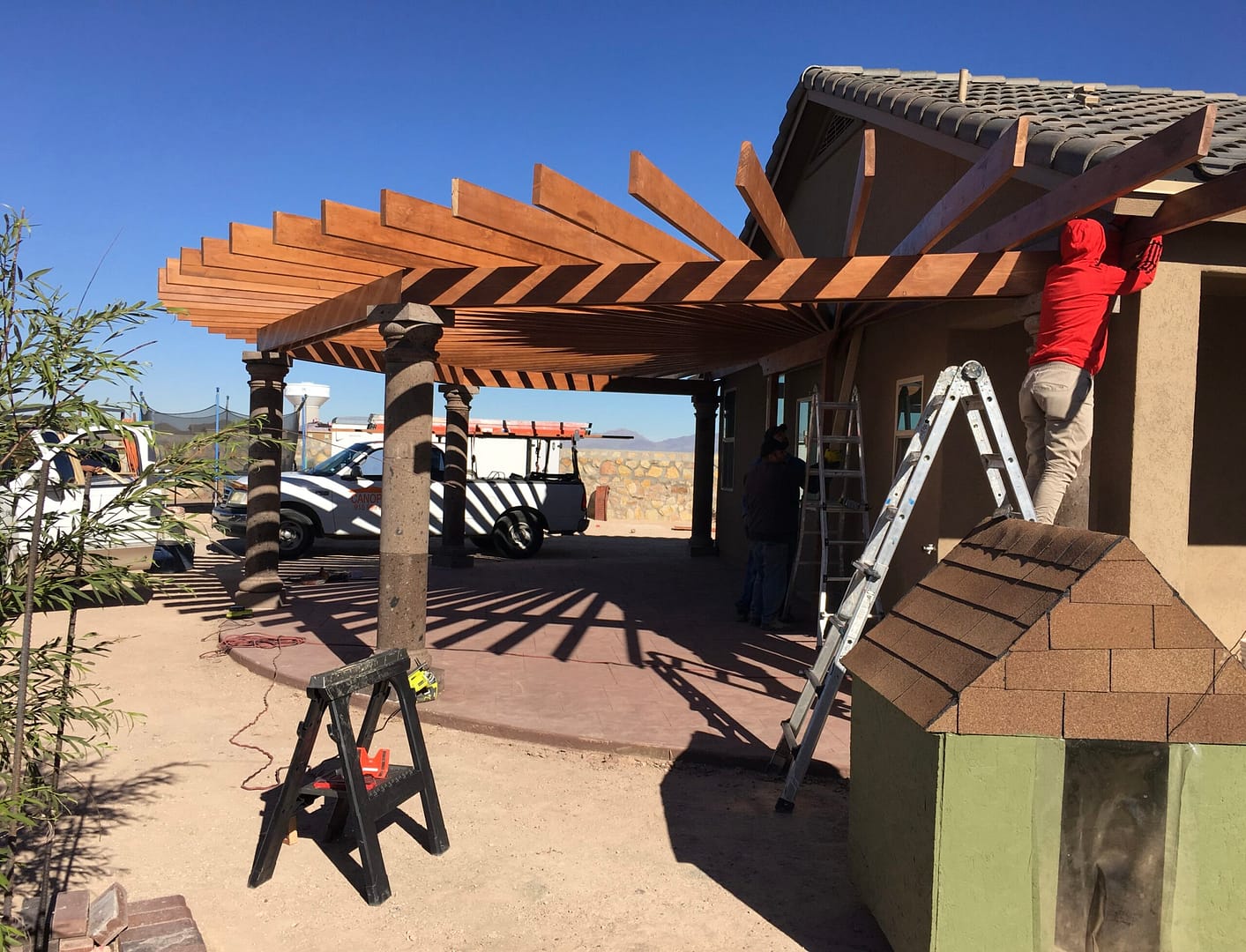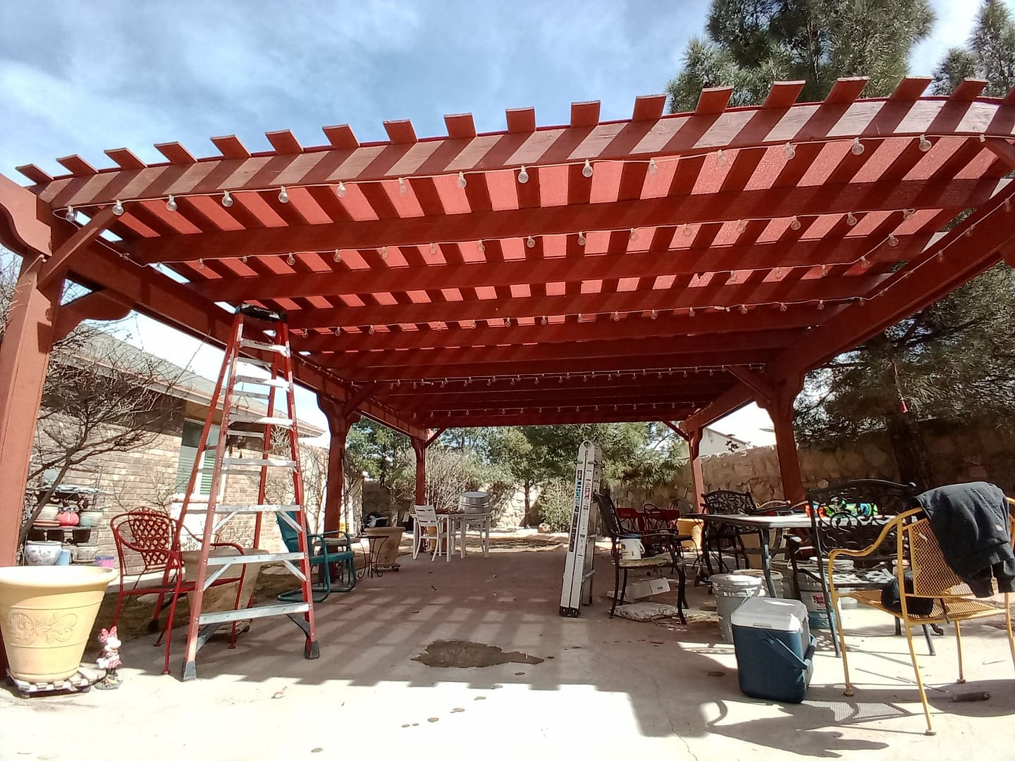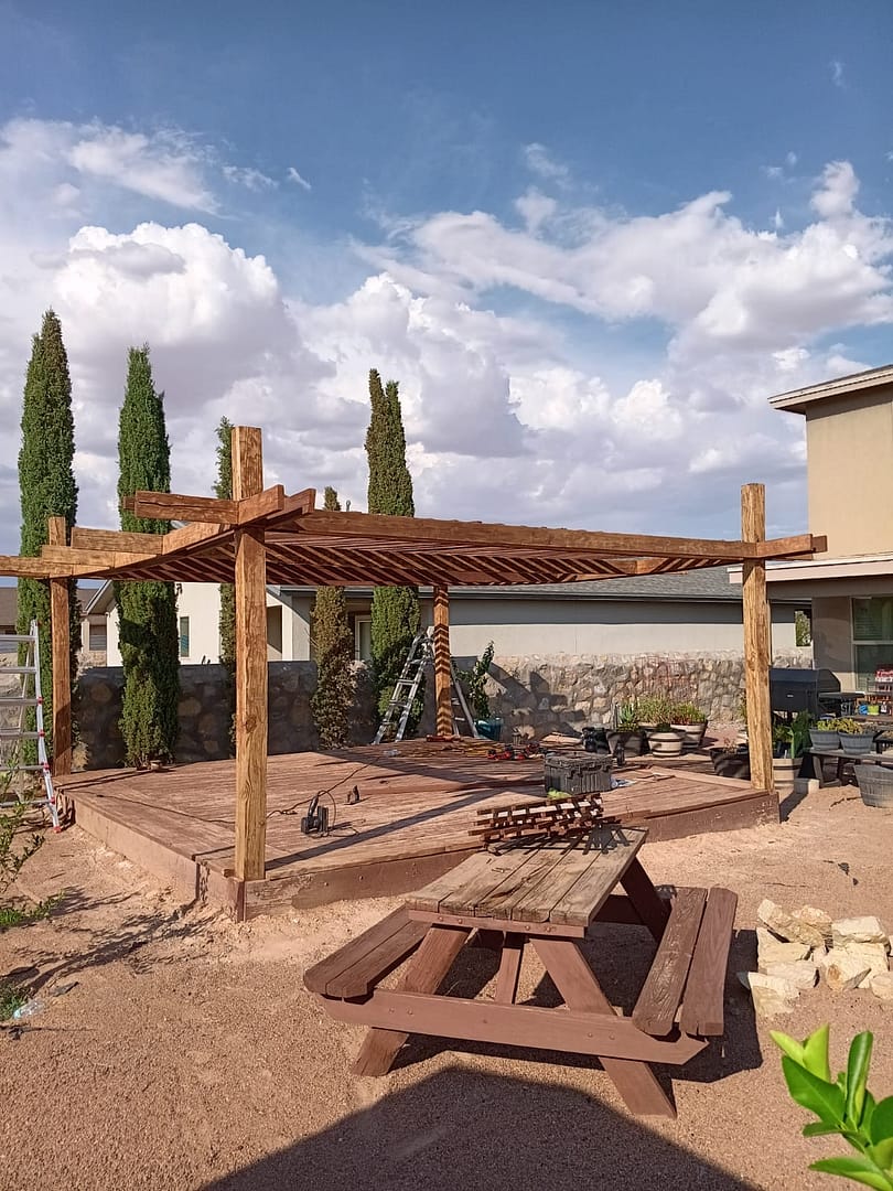 We are an outdoor shade area contractor. Whether you want to create a pergola made with wood or steel we can provide a design to fit your wishes.