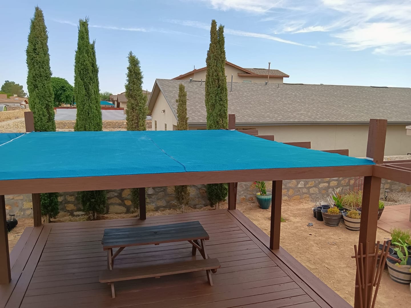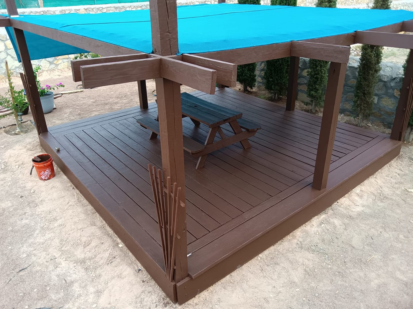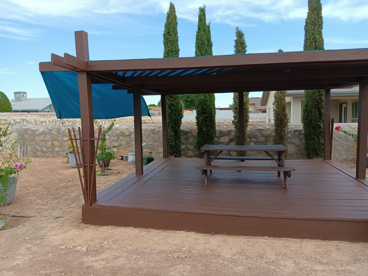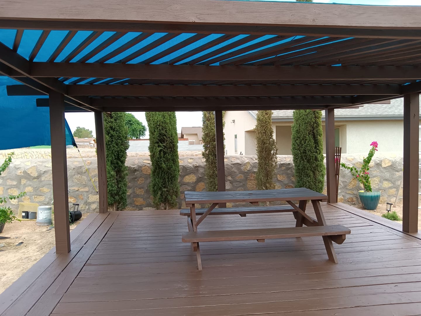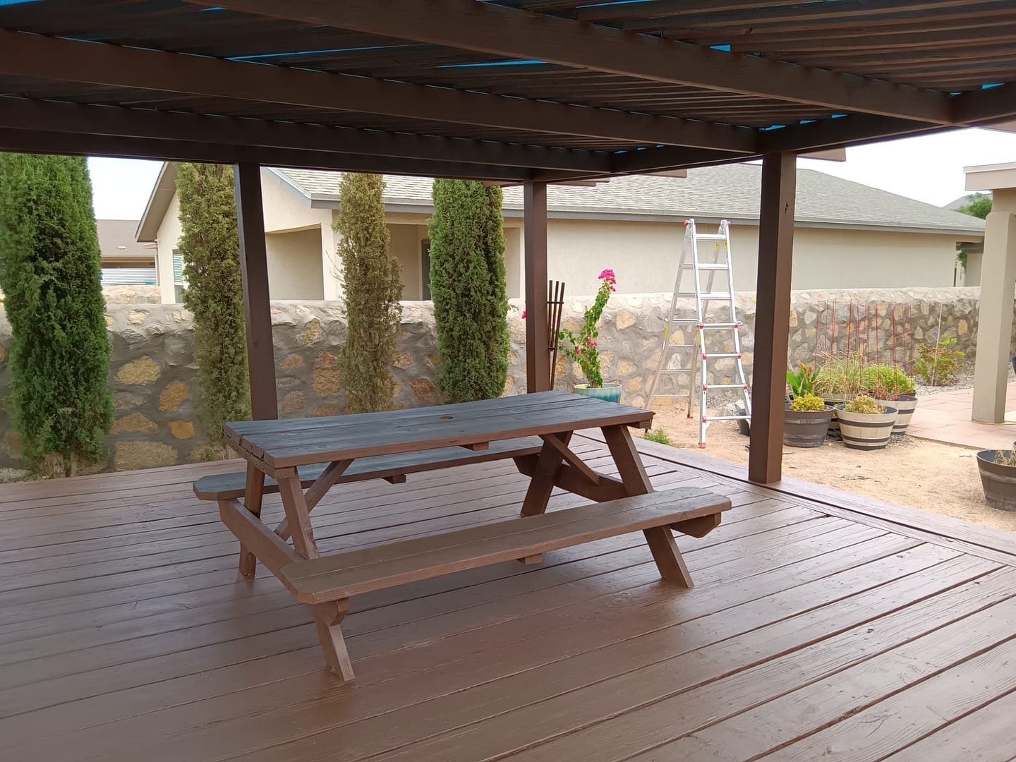 We are an outdoor shade area contractor. Whether you want to create a pergola made with wood or steel we can provide a design to fit your wishes.